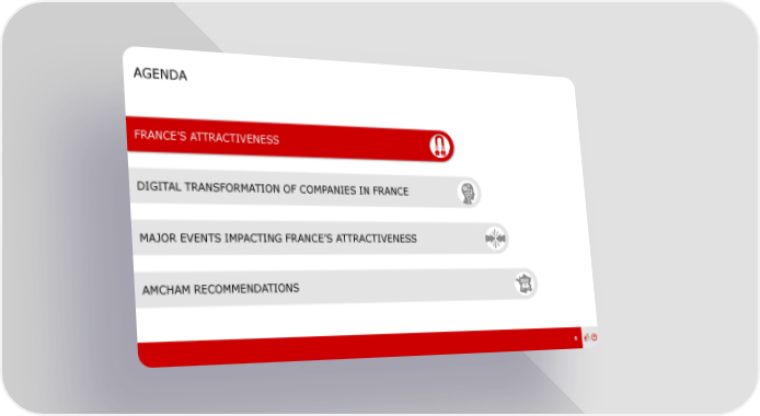 AmCham - Bain Barometer | Prez | En Page 5 Page 7AGENDA FRANCE’S ATTRACTIVENESS DIGITAL TRANSFORMATION OF COMPANIES IN FRANCE MAJOR EVENTS IMPACTING FRANCE’S ATTRACTIVENESS AMCHAM RECOMMENDATIONS 6