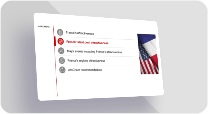 AGENDA France’s attractiveness French talent pool attractiveness Major events impacting France’s attractiveness France’s regions attractiveness AmCham recommendations