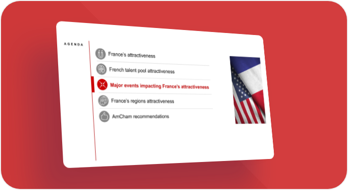 AGENDA France’s attractiveness French talent pool attractiveness Major events impacting France’s attractiveness France’s regions attractiveness AmCham recommendations