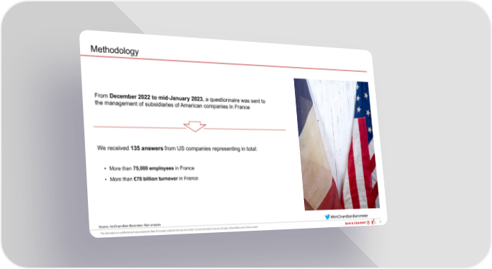 Methodology From December 2022 to mid-January 2023, a questionnaire was sent to the management of subsidiaries of American companies in France We received 135 answers from US companies representing in total: • More than 75,000 employees in France • More than €70 billion turnover in France Source: AmCham-Bain Barometer, Bain analysis #AmChamBainBarometer PAR 200203 - AmCham Bain Barometer ... 3